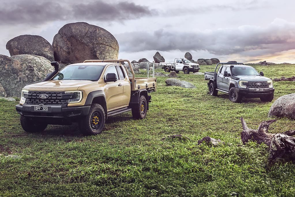 It may look like a Ranger, but don't let that fool you. Externally, all front panels are new, there is a standard factory fit snorkel, pumped out fender flairs, steel front and rear bumpers. The 10-speed auto and 3.0 V6 Powerstroke diesel have been recalibrated for the role, a massive upgrade over the ancient and now 4-cylinder only 70-Series Landcruiser. But it's the underbody where all of the work has gone. All but a few minor parts remain, everything else is new or repurposed from other Ford vehicles. Think Bronco Raptor steering rack, F-250 front suspension, a modified 10-inch diff from the Transit. More on that shortly, but the videos below cover it all -