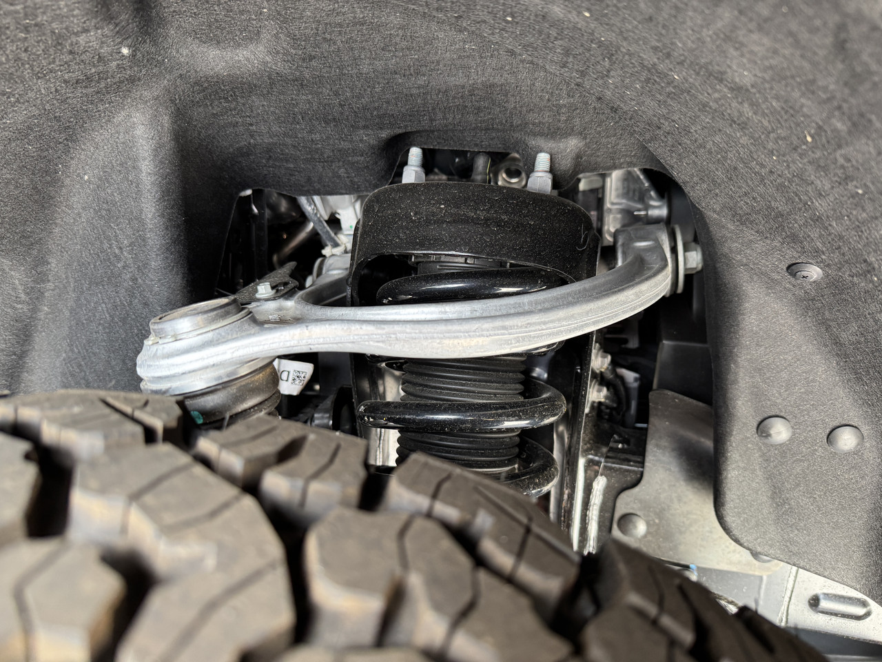 The front suspension though is probably the most impressive chassis change. The lower wishbone is absolutely massive, both dimensionally and in thickness. The upper wishbone has also been beefed up too. Just check out the size difference between the Super Duty and a Ranger Raptor, there's no contest!