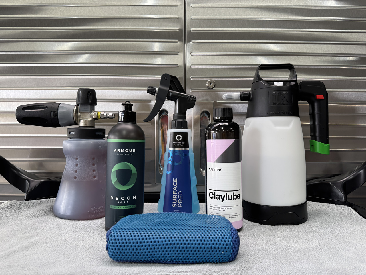 From here, I foamed with Decon Soap then went ahead with the contact wash. I love ADS Decon Soap because it's super slick and stays on the car for the whole wash rather than disappearing as you work. Great product! After another rinse, I went around with Carpro Clay Lube and a TRC Ultra Clay Scrubber. I really didn't want to douse this car in iron remover, and from experience, it's not a worthwhile step on these garage queens. So, a very light clay treatment was all I felt was needed, and even then, I'm not sure how much contamination there was to remove. Still, I did it to tick that check box. This was my first try of Carpro's clay lube, it's probably not as slick as Gyeon's but I like how it stays active for longer and even lathers up a little bit as you work. It also rinses freely.