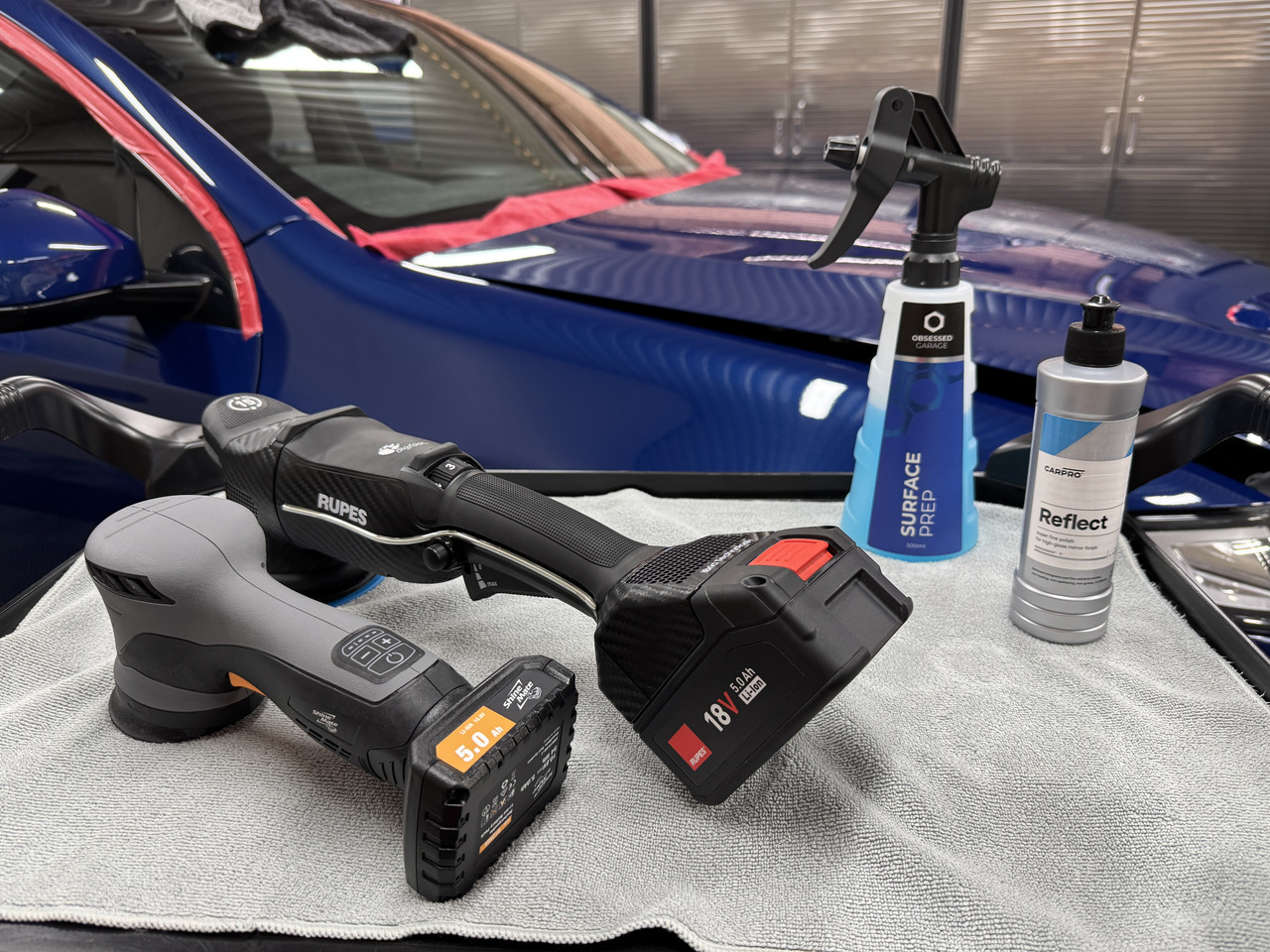 The last time I polished this car, it was my first time polishing with battery power. And what a revelation. Unless you are running a polisher all day every day, we are at the point now where a power cord is basically obsolete. No management of cords, more flexibility, superior balance.