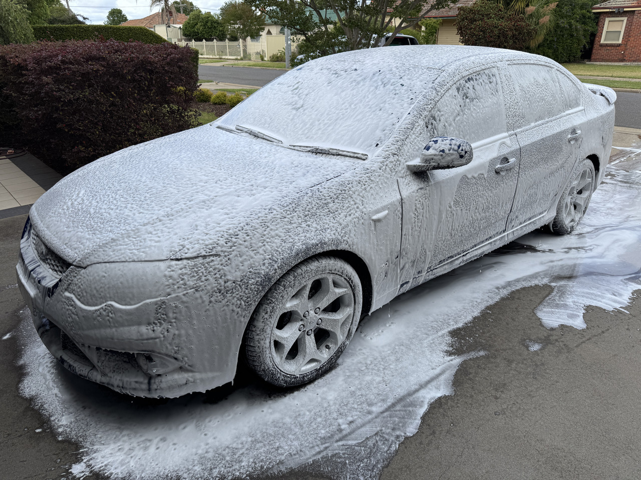 I won't be touching the wheels for this detail, so I foamed them with Touch-less, scrubbed the tyres with Wise Guy, then rinsed.......done. From here, the whole car was rinsed for the next steps.
