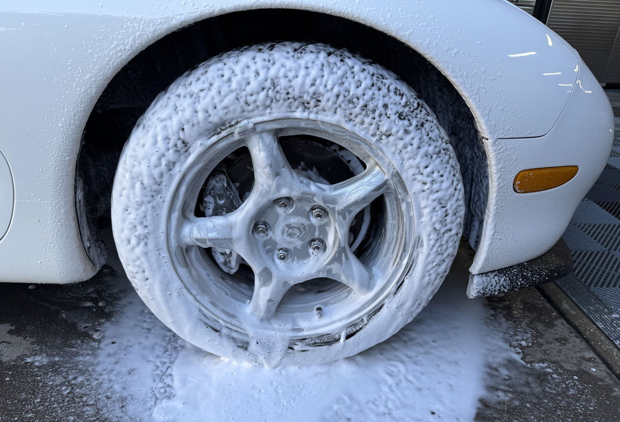 The tyres were scrubbed with Wise Guy, the wheels got pre-treated with NV Purge, then contact washed with foamed Brake Buster. Once clean, I followed with Hydr02, then Atom Mac on the rotors. After this, the wheels looked good and only the closest inspection would reveal what remained.
