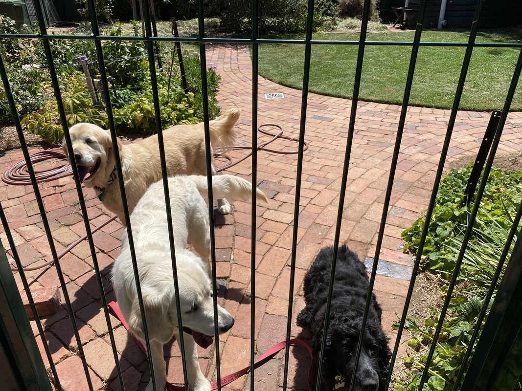 Where possible, I’d take him to work with me in the garden. He’d roam around while I weeded, trimmed, and watered. Often this would be two golden retrievers, which I thought would be good for him to socialize………………..but just like me, he would have none of it and preferred to his own company. I was once told dogs take on their humans character traits, well I suppose that would explain the anxiety and social awkwardness.