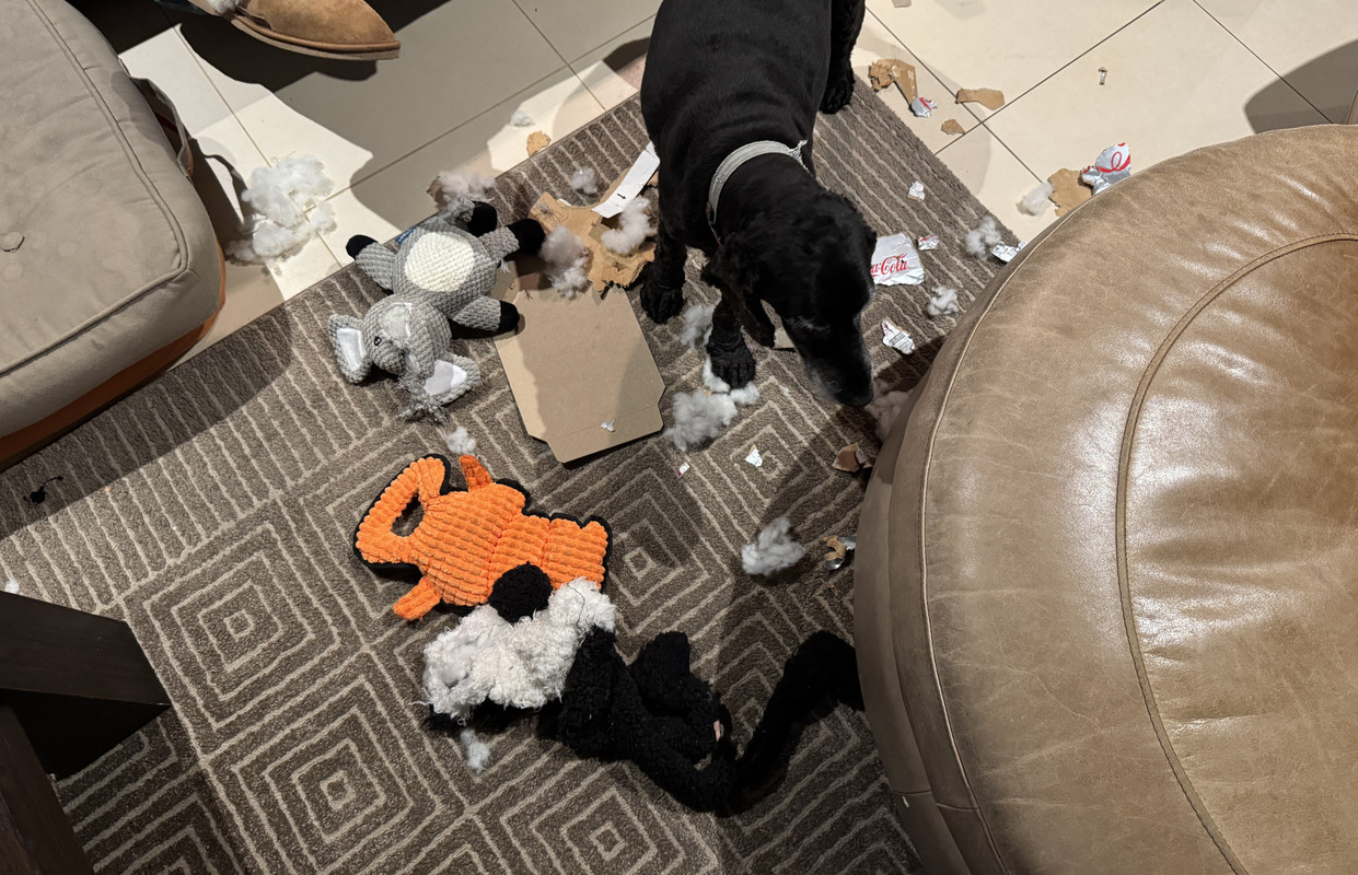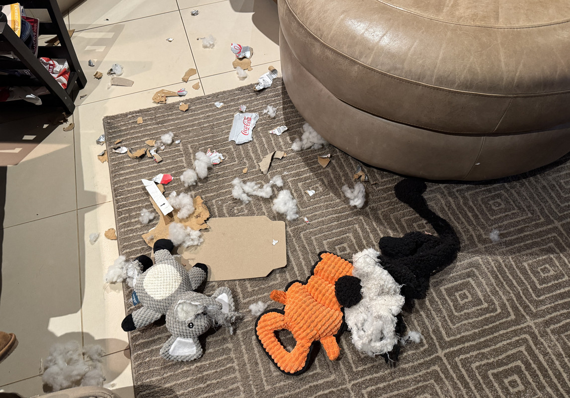 Both mine have been chewers, but it's becoming less frequent now. Neither like actual chew toys though, they give up and ignore them, they like ripping cardboard into tiny little pieces, also foam and the occasional noodle mitts if I leave them down low. Ziva is the only one that's mangled a cable, but it was a phone charging cable, she did that when she was still a puppy, and was separated from her brother while she still had stitches in from being neutered. Busters most impressive feat was chewing the cover off a cricket ball, which is harder than a baseball.Thistle did this and it’s the first time she’s destroyed something that wasn’t given to her