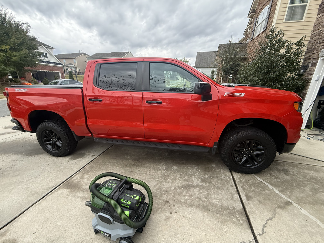 One bucket wash with Bowden's Nanolicious Wash before moving it back inside to dry, it's just easier doing it on level ground, used After Glow as a drying aid with a Liquid8r.