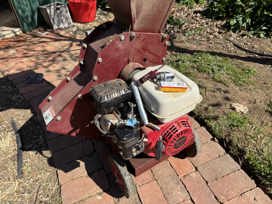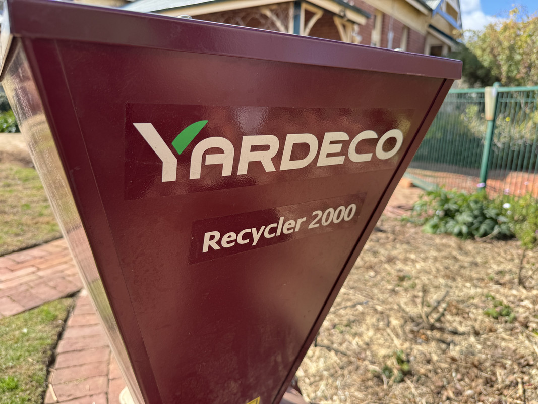 The shredder in question is a Yardeco Recycler 2000 fitted with the 5hp Honda GX 160 engine. These are Australian designed and engineered and were available with Briggs & Stratton or Honda engines, thankfully, the owner went with the Honda engine (I hate Honda machines but like their commercial engines). It would appear the Yardeco brand no longer makes shredders, but still offers garden scratchers (tillers), powered wheelbarrows, and log splitters.
