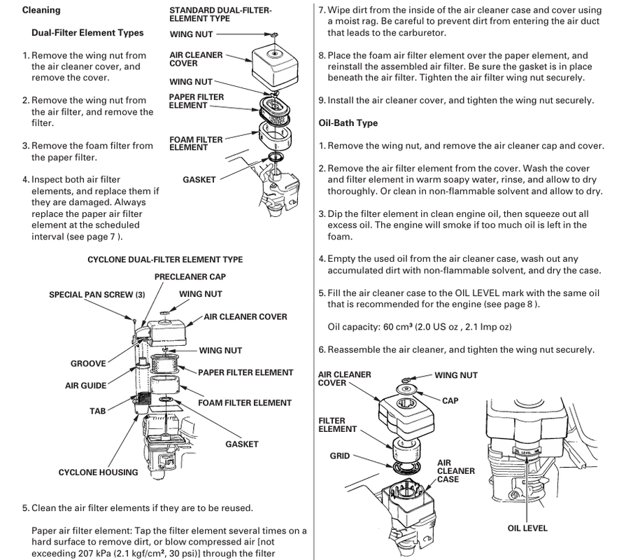 Honda makes three different air filter types for these engines. The first two are conventional, either a low-profile foam sock, or an oval paper cartridge with a foam pre-filter. On this particular GX 160, it has the third type, an oil bath filter. I've never worked on an engine with a filter like this, a design I thought was confined to the early days of small engines, but clearly not.