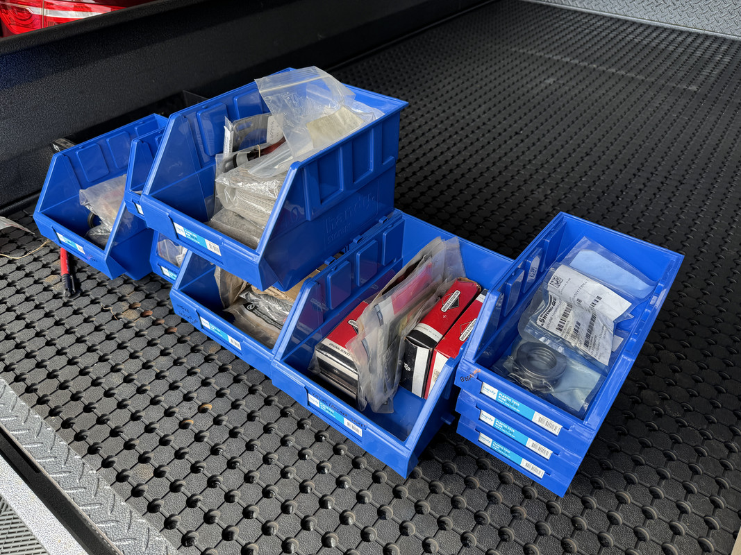 For the smaller stuff, I went and got a collection of containers from Bunnings. These include valve cover gaskets, intake/exhaust/breather gaskets, head gaskets, assorted unknow gaskets, oil seals, bearings, screws and fasteners, assorted hardware.